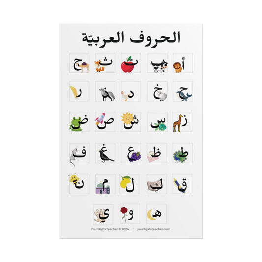Arabic Alphabet with Pictures - Glossy - Matte - Choose Your Size