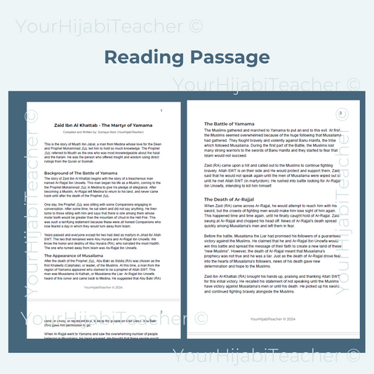 High School Reading Comprehension and Writing Prompt - Zaid Ibn Al Khattab