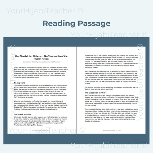 High School Reading Comprehension and Writing Prompt - Abu Obaidah Ibn Al Jarrah