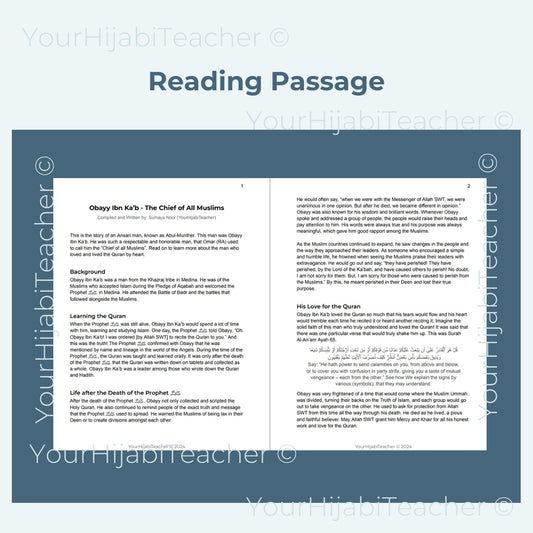 High School Reading Comprehension and Writing Prompt - Obayy Ibn Ka'b